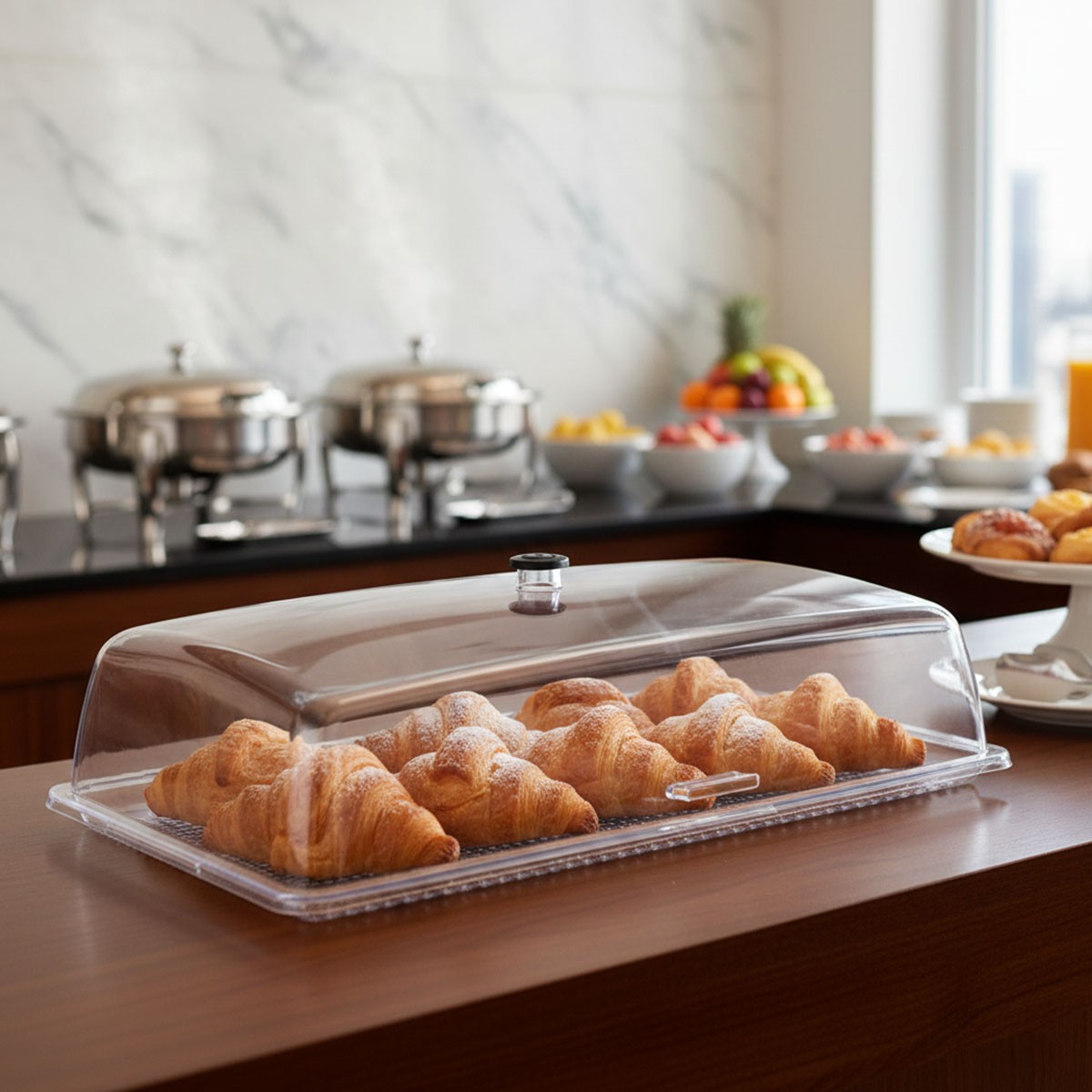 Ideal para exhibir muffing, medias lunas y panes.