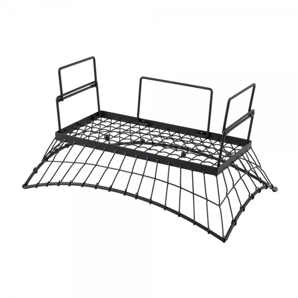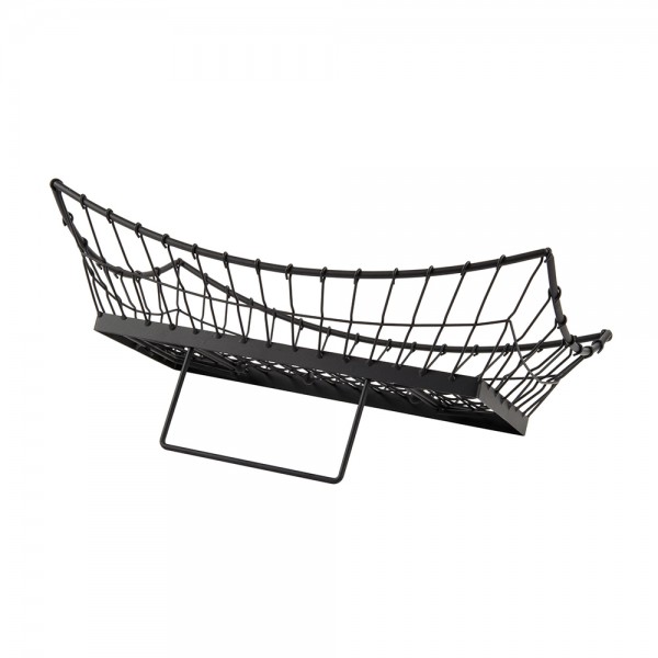 Canastilla rectangular de la colección Master Transformer de Tablecfrat es de alambre negro recubierta, cuenta con patas ajustables que le permiten crear hasta 6 exhibiciones. Se puede usar para exhibir distintos productos como pan, frutas, servilletas o diversos productos.